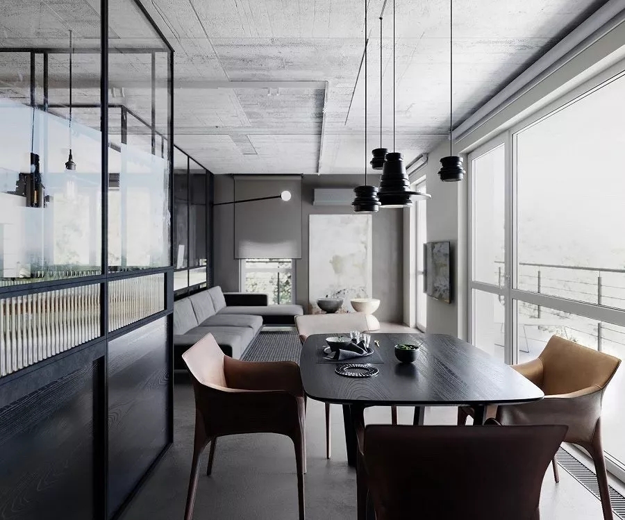 工業風的美,在於不多矯飾的原始和質樸,也在於粗獷外表下掩藏其中的時尚張力與精致享受。黑白灰色係十分適合工業風,鮮明的對比賦予了整個空間強勁的戲劇張力,令整體看起來簡約、高端又極為精致優雅。