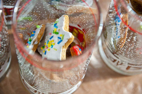 三個軟木盒用繩子捆在一起,飾以草莖;旁邊是一個被禮品包圍的裝有糖果的玻璃瓶。